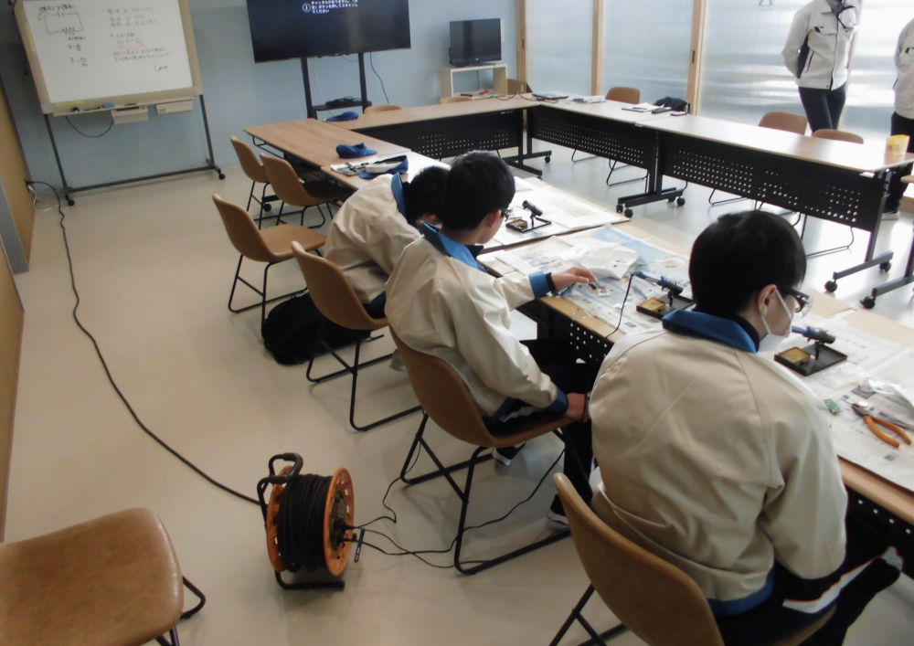 実際に工具を使用し、プリント基板の製作を体験していただきました。